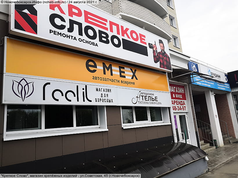 Фото № 3 -​ ул. Совет­ская, 45 (г. Ново­че­бок­сарск) -​ "Креп­кое Слово", мага­зин кре­пёж­ных изде­лий